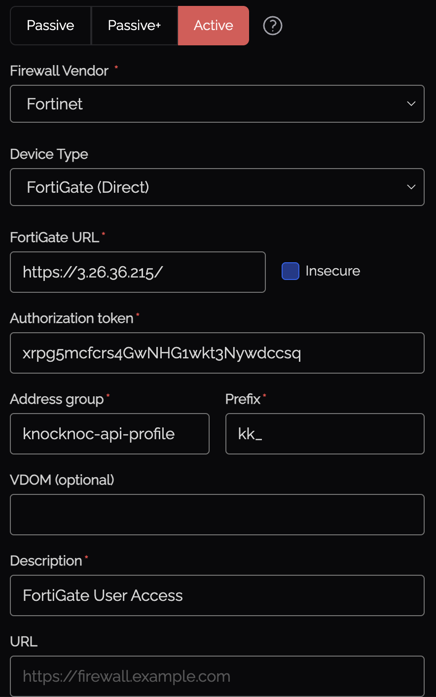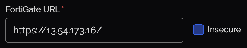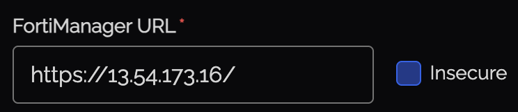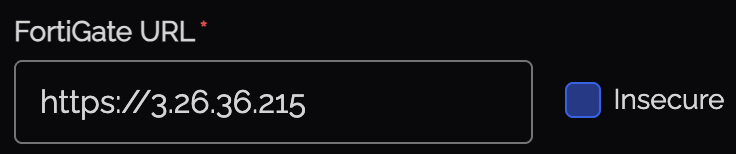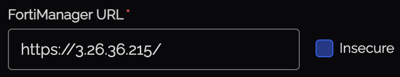 | FortiGate URL / FortiManager URL | The URL of your device (e.g., https://fw.example.com or https://fmg.example.com) |