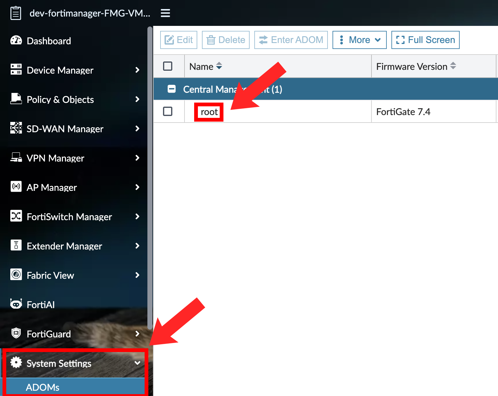 Instructions below are for FortiManager only