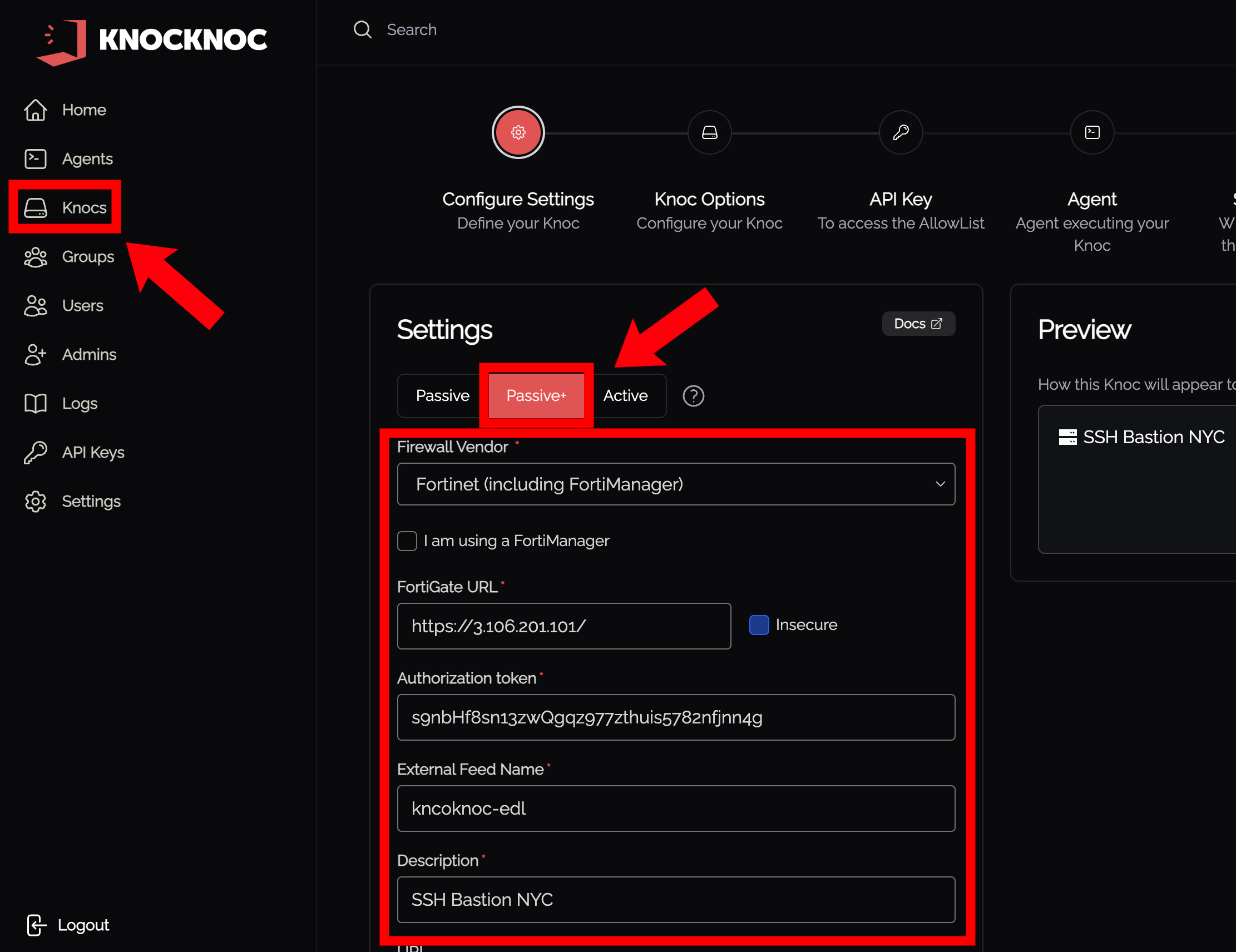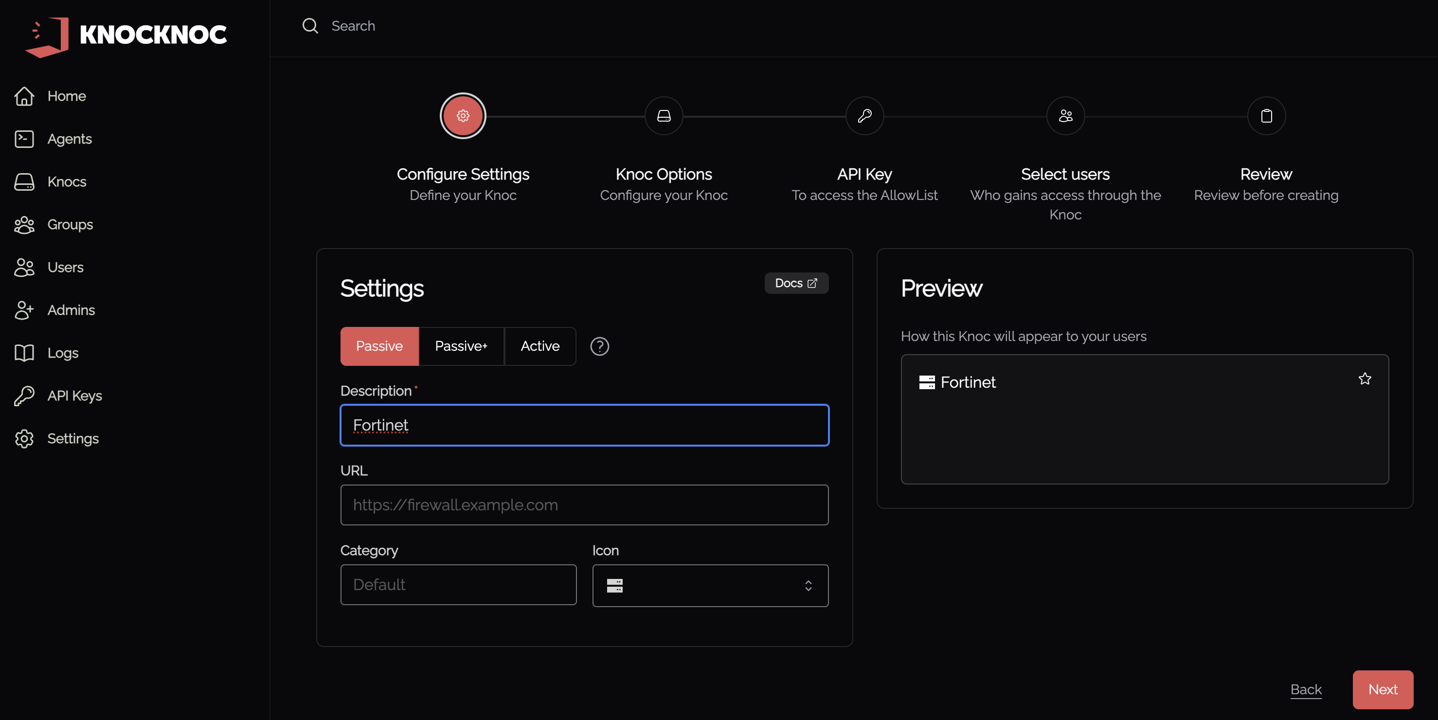 Step 1 - Create Knoc in Knocknoc (Passive)