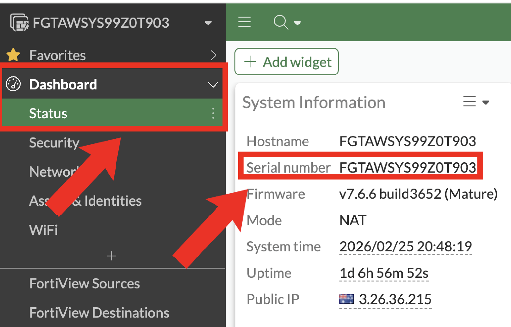 - On FortiGate, run