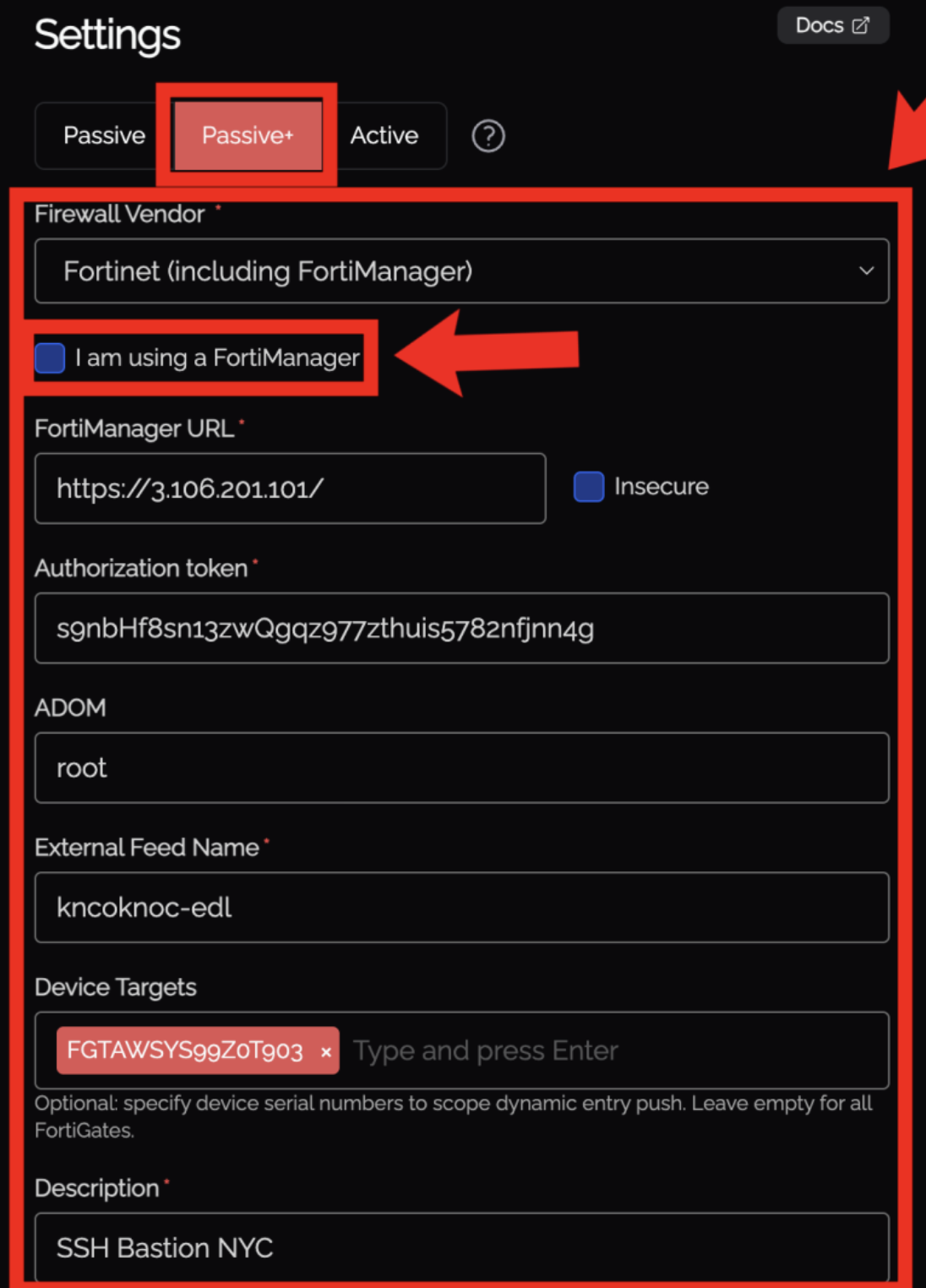 Device Targets not working (Passive+ FortiManager)