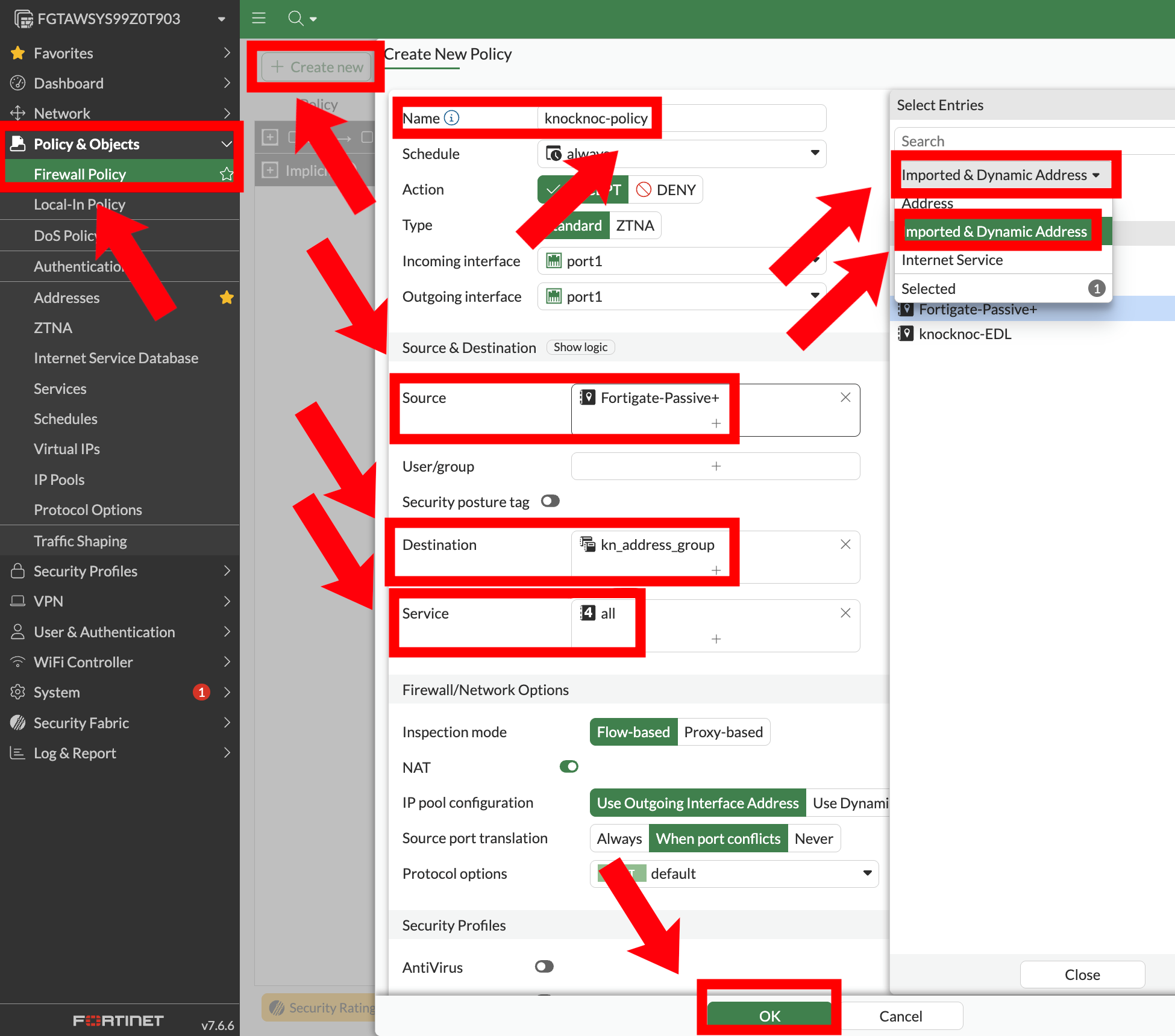 - Verify the FortiGate can reach the Knocknoc server over HTTPS