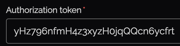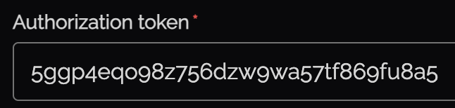 | Authorization token | The API key from the API user created in Step 2 |