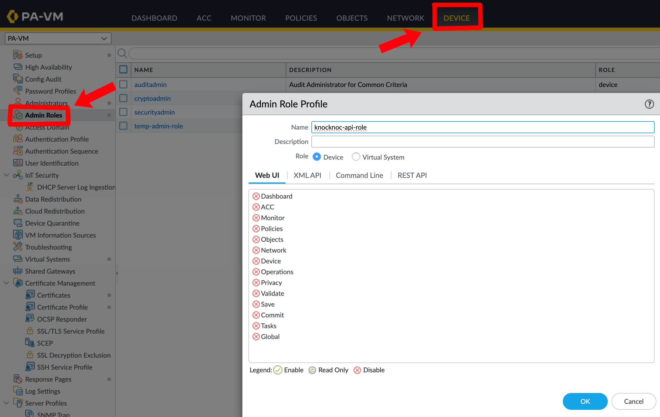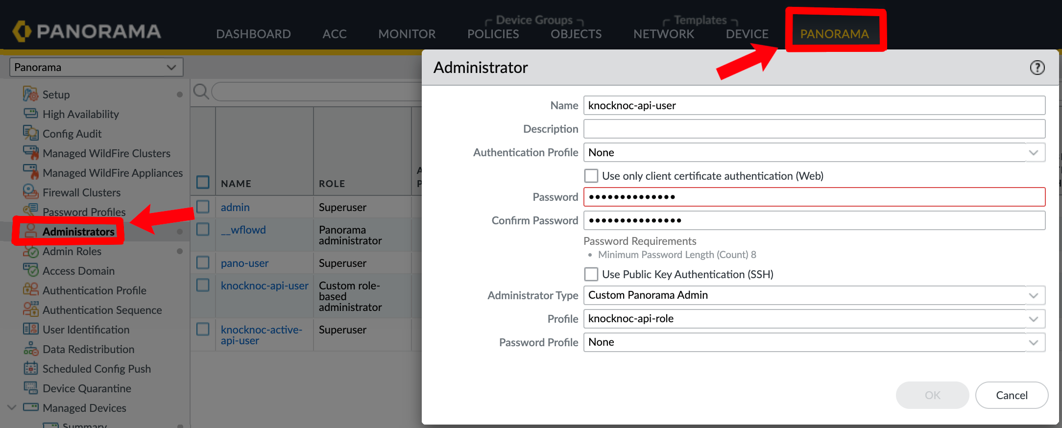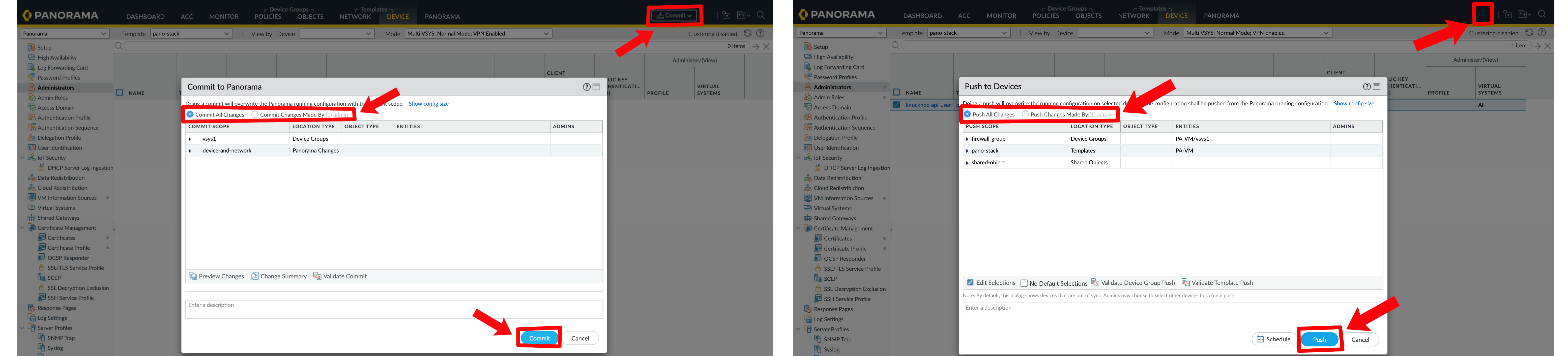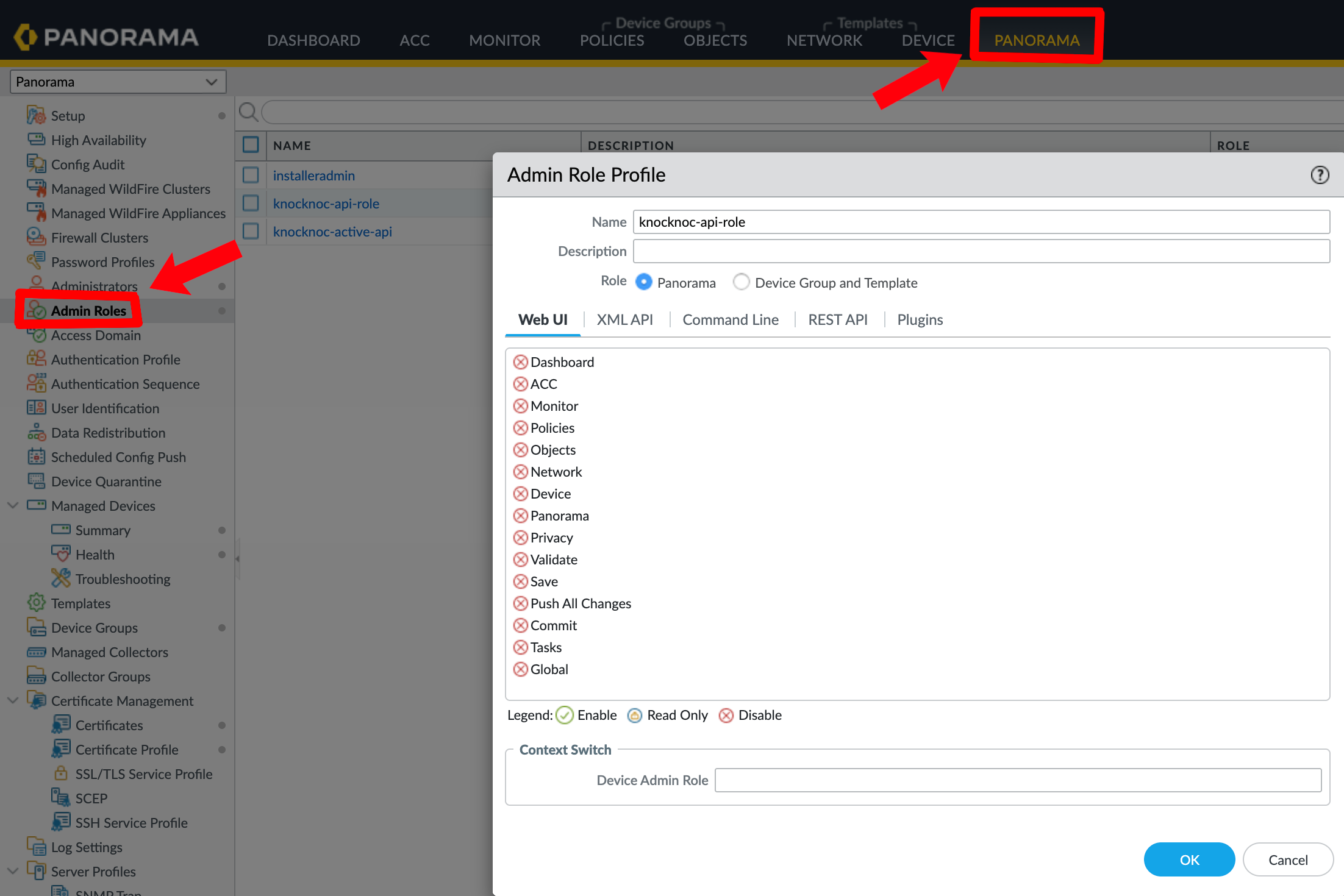 | Knocknoc/Palo orchestration mode | API access and permissions required |