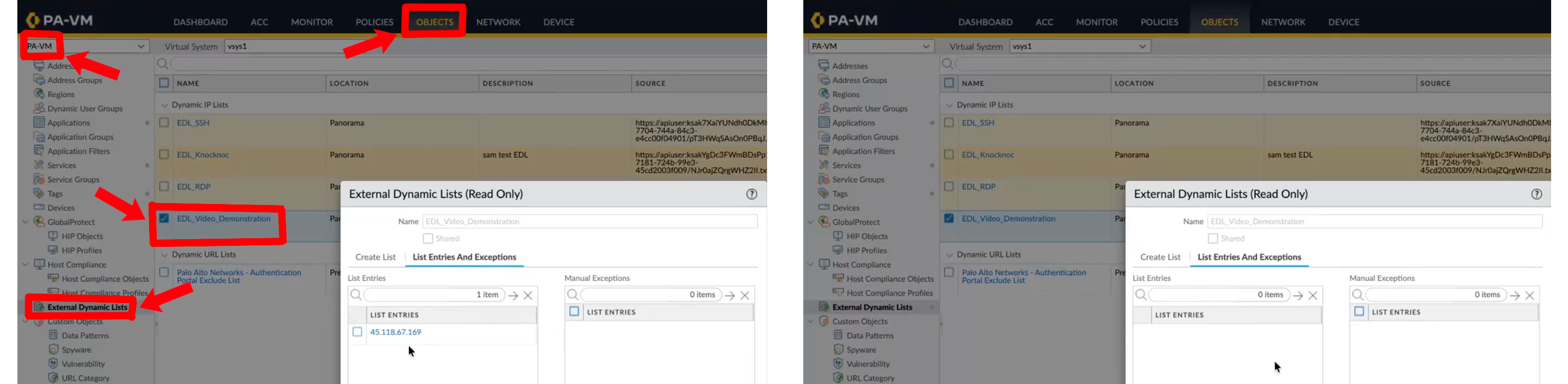 - EDL Configuration: Configure the Palo/Pano; 1. Configure the EDL 2. Allow limited API access to refresh the EDL via a least-privilege api-user-role and api-user.