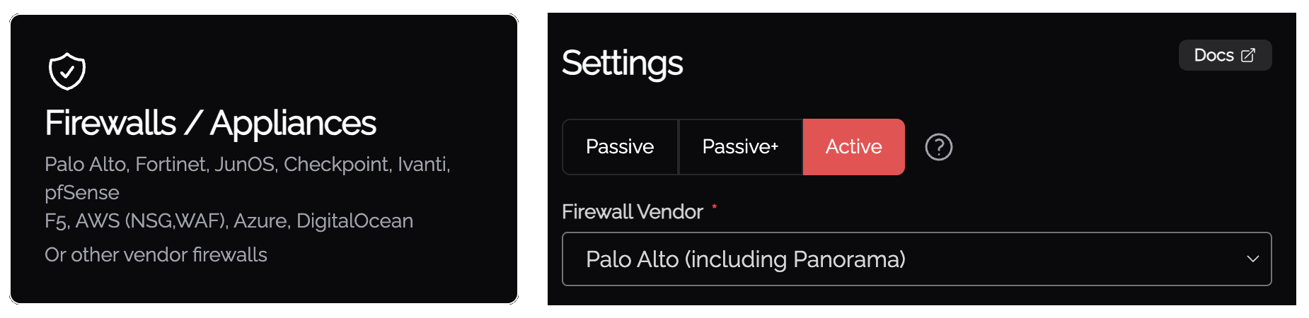 Select the "Firewalls / Appliances" Knoc configuration, selecting "Passive+" or "Active"