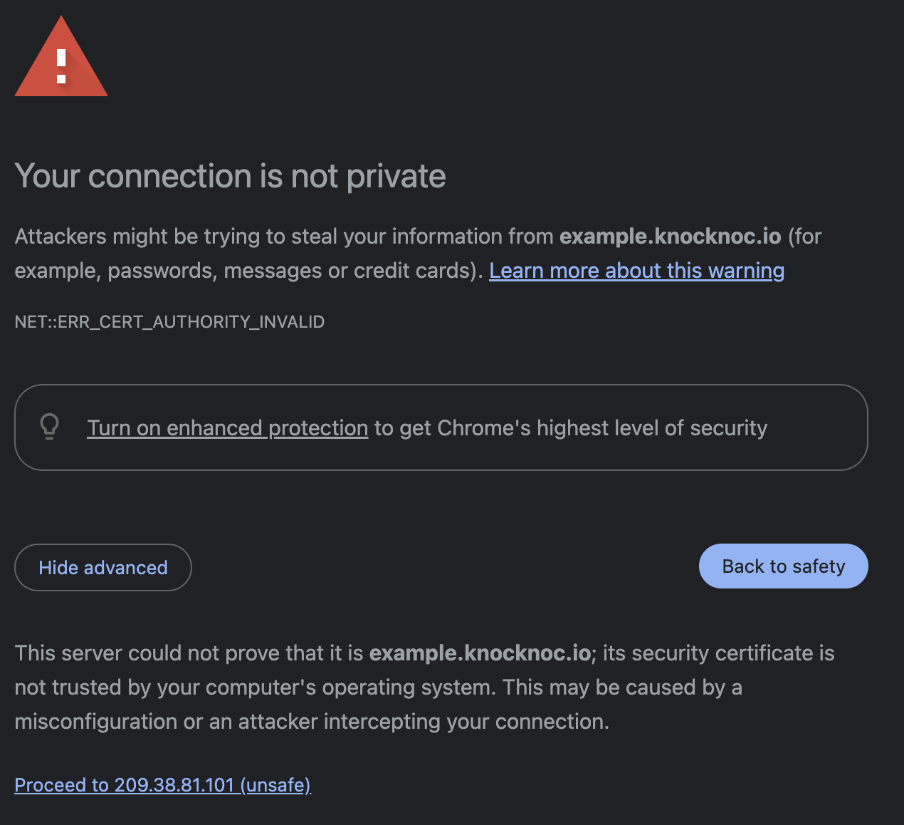 Now you should be able to navigate to your URL without seeing any warnings!