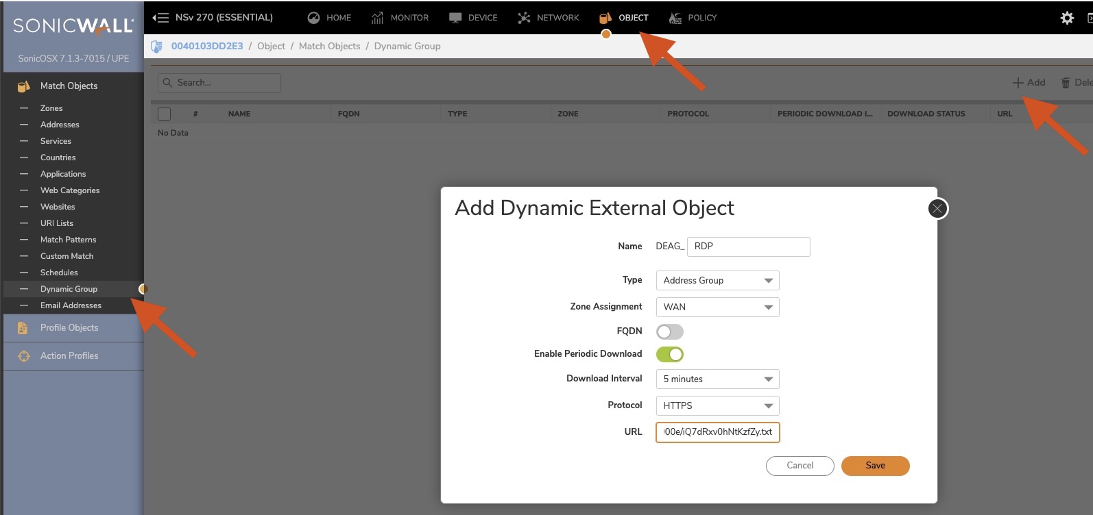 The Sonicwall can be orchestrated in three ways, Actively (API call from an Orchestration Agent to the Firewall), Passively via Sonicwalls DEAG polling capability, or a combination known as Passive+, where a DEAG is utilized with an active force-download-now call made to the Sonicwall API to shorten the polling period.