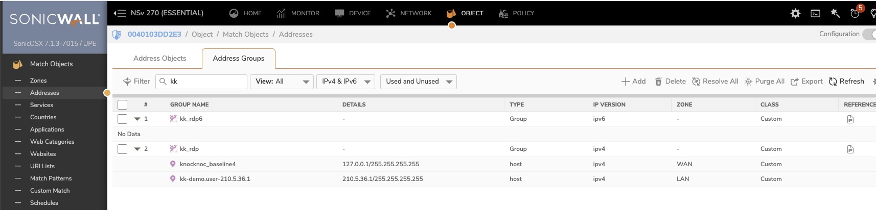 You can now use this knocknoc-managed dynamic address group within firewall rules and policies.